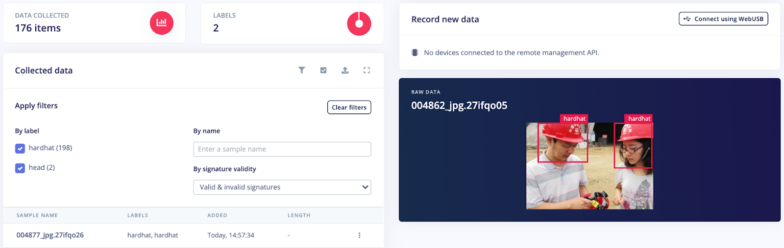 Note that the inference is run locally and you do not need any internet connection to detect your objects. Last but not least, the trained models and the inference SDK are open source. You can use it, modify it and integrate it to a broader application matching specifically to your needs such as stopping a machine when a head is detected for more than 10 seconds.