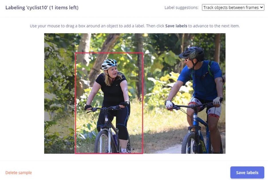 As is typically the case, this process begins by collecting data to train the model. Taylor sought out open source images of cyclists on the Internet, and managed to collect about 100 images. This is quite a small dataset, but should be sufficient for a proof of concept. Before deploying in the real world, it would be important to get a more diverse set of images with differing weather and lighting conditions to ensure that the resulting model is sufficiently robust.