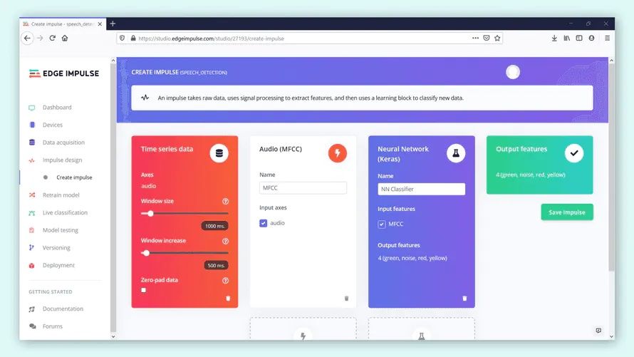 To recognize the different sounds that an elevator makes, a neural network classification pipeline was constructed with Edge Impulse Studio. As it turns out, abnormal sounds made by elevators in a state of disrepair are not so easy to come by for the average person, so Arakistain instead tracked down some audio datasets of more common sounds (dog barking, glass breaking, gunshots, background noise) to prove the concept. These audio samples were uploaded to Edge Impulse using the data acquisition tool.