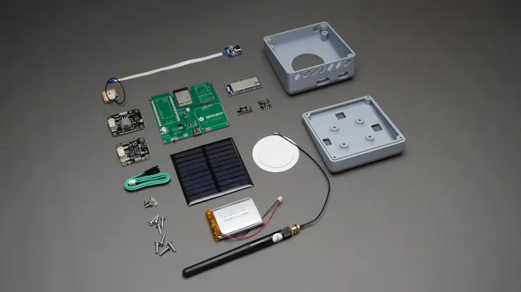 Building these autonomous monitors required a robust hardware foundation capable of surviving off-grid. For this reason, Sankhla designed a custom printed circuit board for each node. This board includes an ESP32-S3 microcontroller for running the AI algorithms, an RP2040 LoRa module for communication, and a power management circuit for a Li-Po battery kept charged by a 70x70mm solar panel, ensuring perpetual operation in the field.