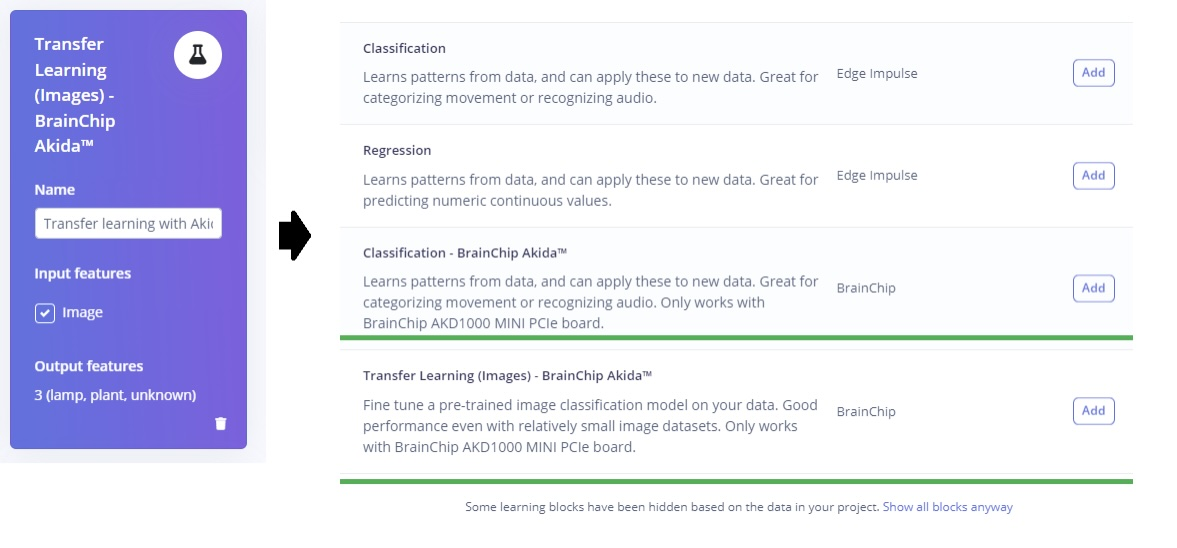 Ing’s second project leverages a neural network classifier to identify defects in detected objects. Edge Impulse’s extensive support for BrainChip devices enabled Ing to select a pre-trained model from the Akida Model Zoo. These pre-trained models already contain a lot of knowledge about the world, which means smaller datasets can be used to fine-tune them for a particular use case. In addition to saving time, this results in the generation of more accurate models.