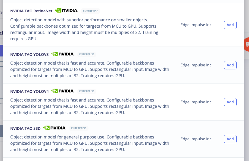 With the NVIDIA TAO Toolkit integration, Edge Impulse’s enterprise customers can now use the power and efficiency of transfer learning to achieve state-of-the-art accuracy and production-class throughput in record time with adaptation and optimization. This is integrated directly into the Edge Impulse platform for any existing object detection project, available for all enterprise users today.