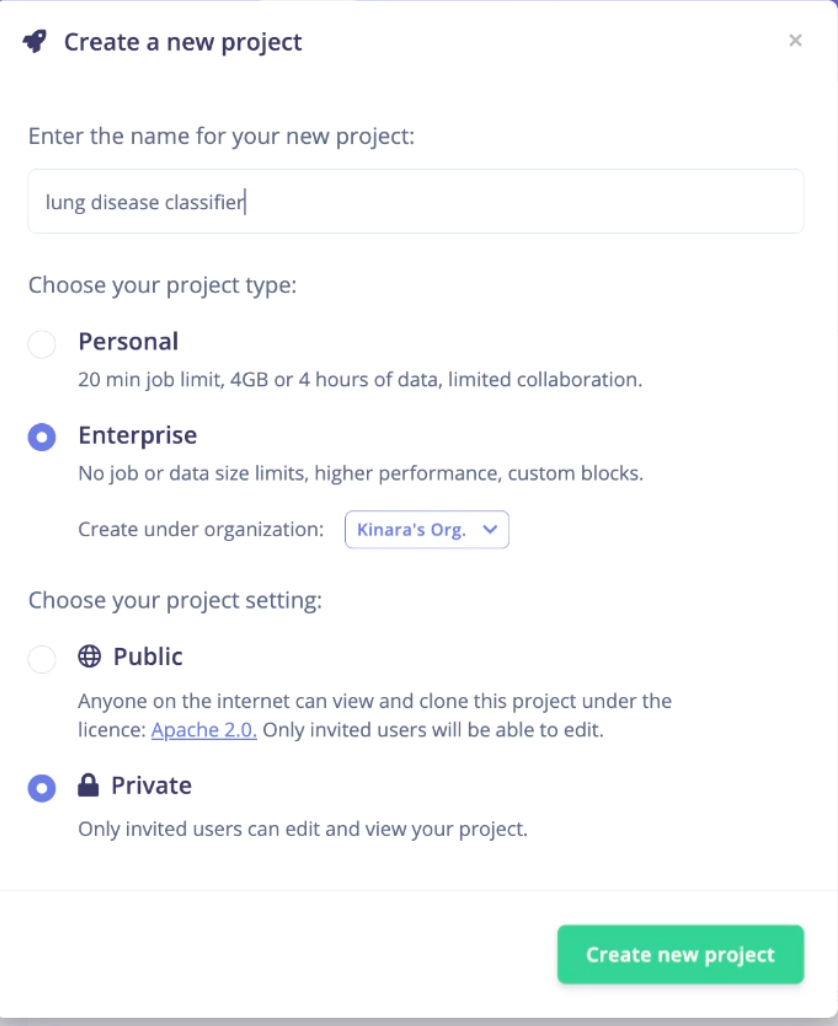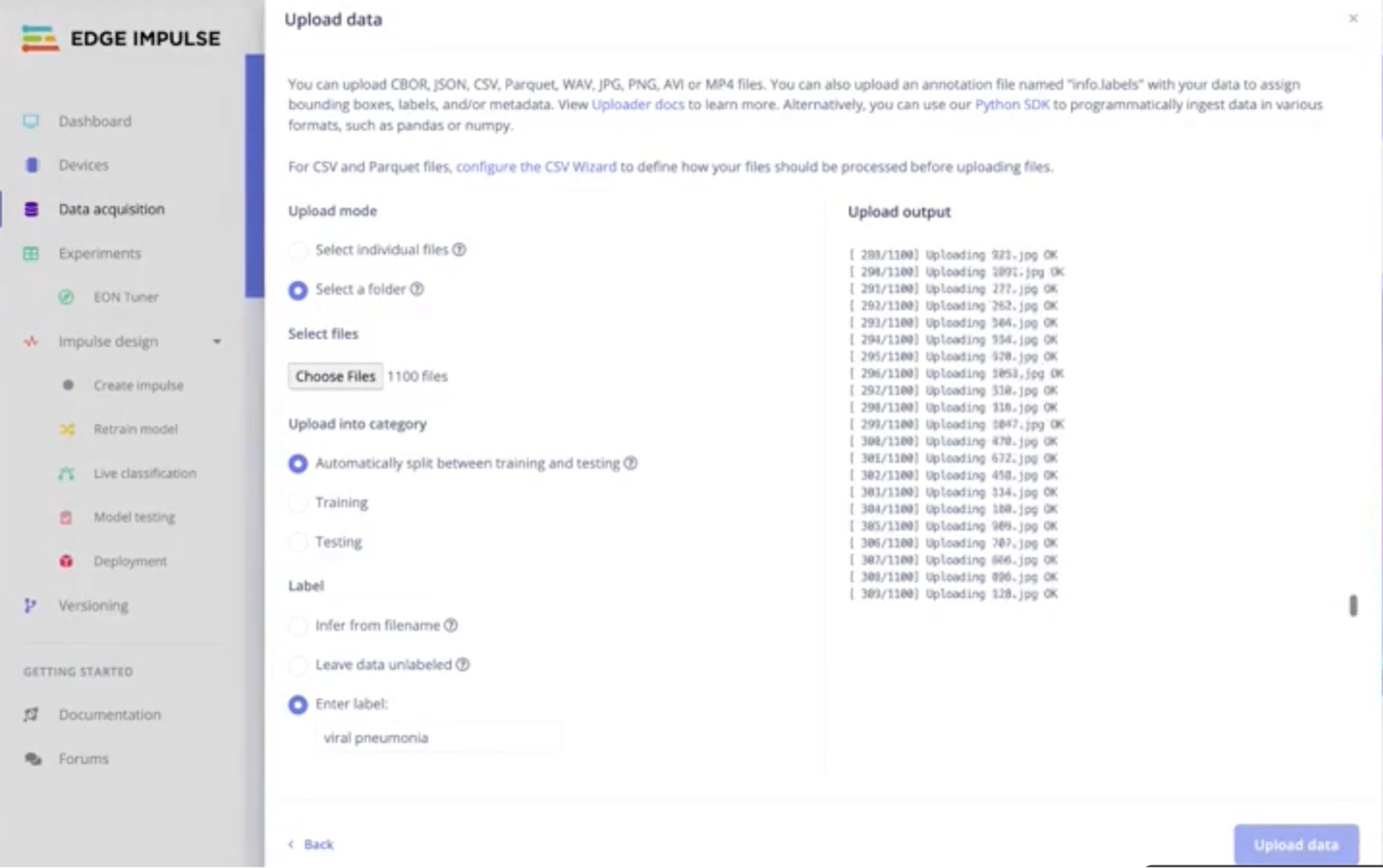 - Data Upload: Upload the downloaded dataset and upload it by class (Normal vs Pneumonia).