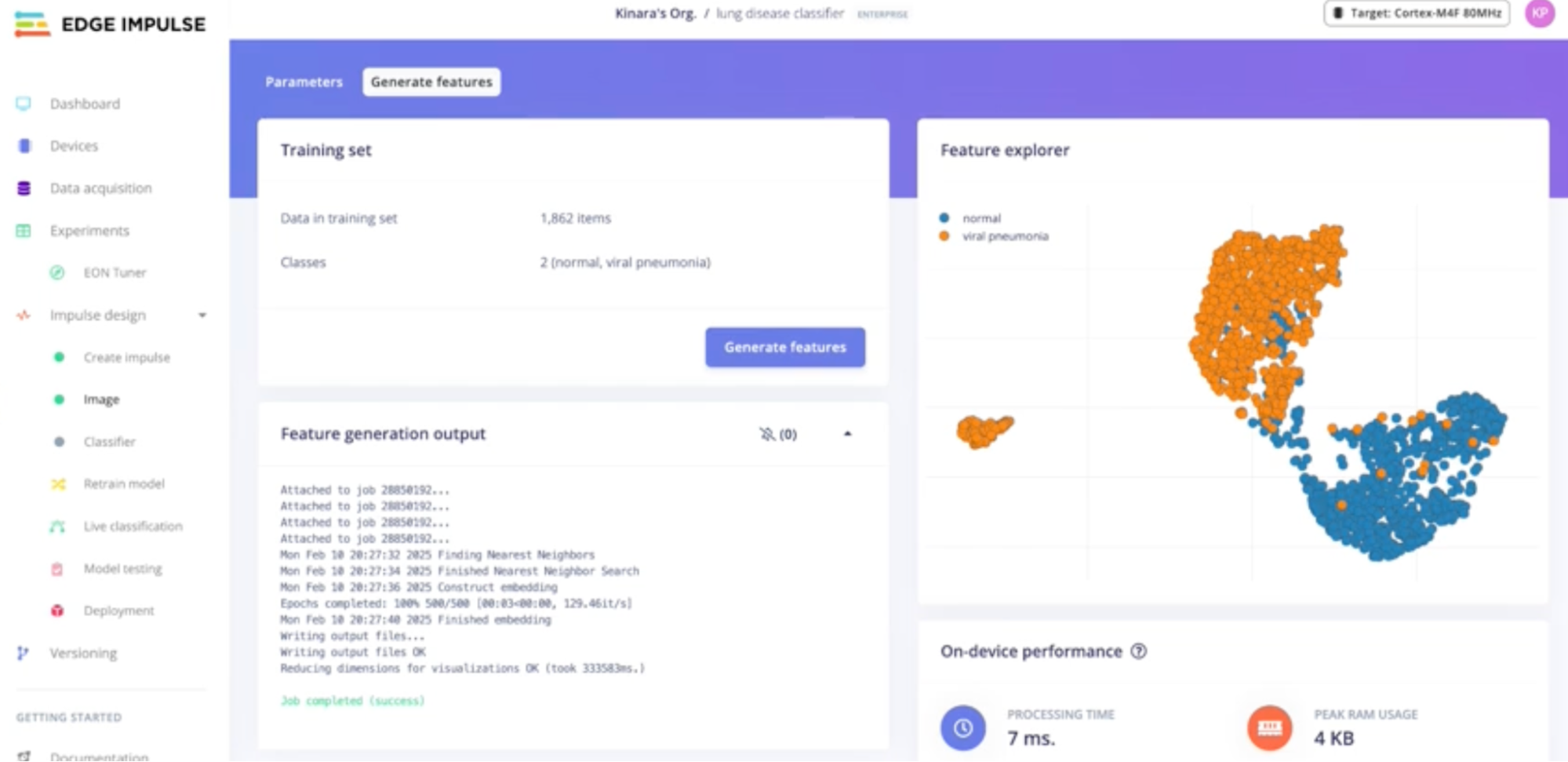 - Feature Generation: Edge Impulse handles the tedious task of transforming raw images into features suitable for machine learning