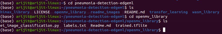 Next, open up the openmv_library file from the folder created in your machine using the command laid below.