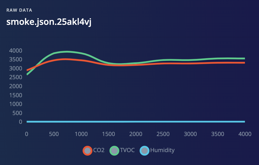 For this demo we perform sensor fusion with TVOC, CO2 and humidity sensors. The sensors used here can also be easily swapped out for sensors typically used in smoke detectors such as photoelectric and ionization sensors. With a sufficient data set, we would expect similar levels of accuracy to the model trained in this demo.